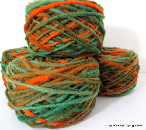 Limited Edition Handspun Hand dyed yarn Bulky Chilean Wool Knitting Multicolour Araucania Chunky Skein Green orange Light green 100g 3.5oz
